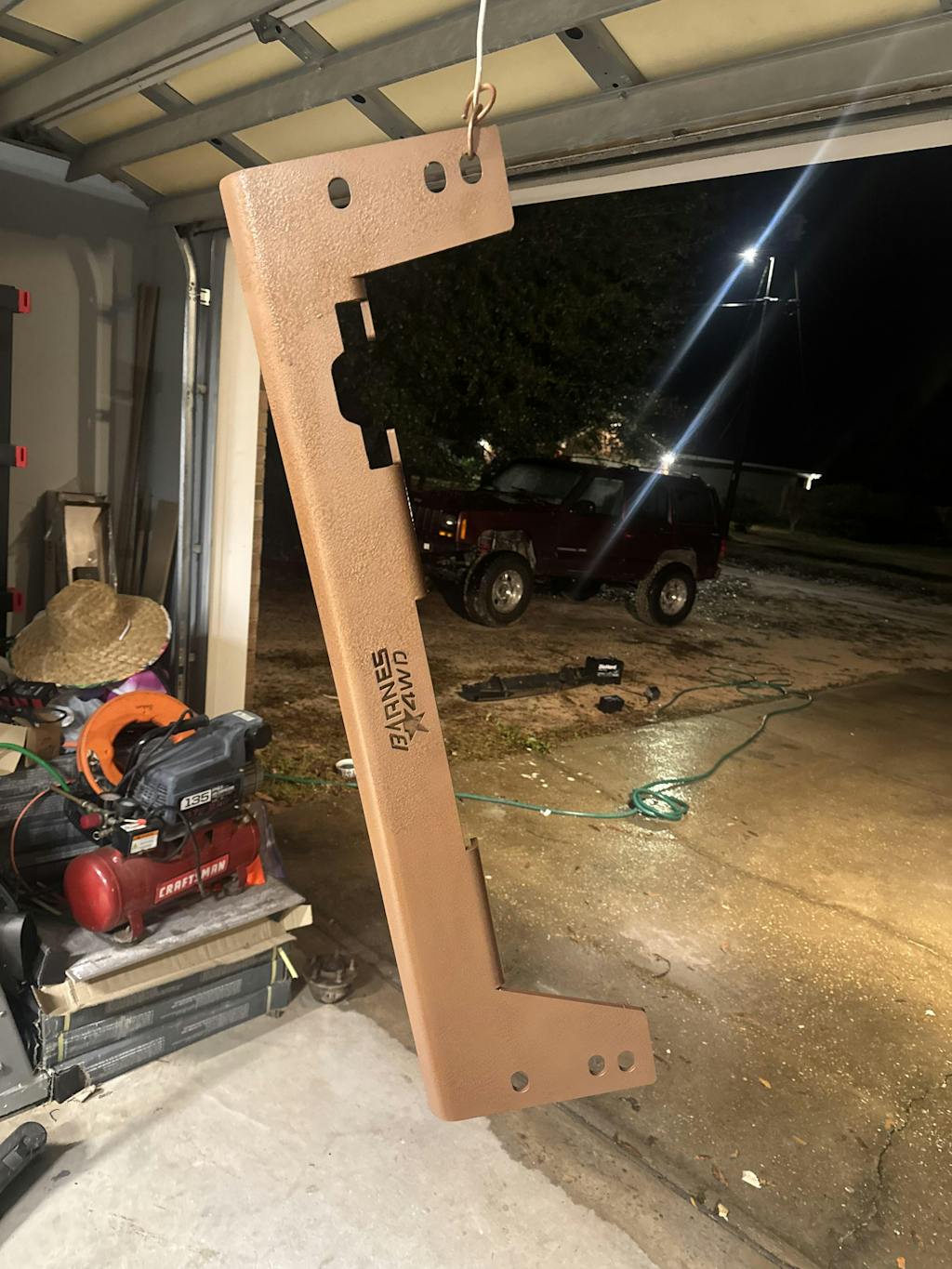 Got a broken, crumbling factory aluminum steering box spacer on your Jeep Cherokee or Comanche? Barnes 4WD has the solution with our XJ/MJ Steering Box Spacer! This bracket is laser cut from 3/16" steel and precision machined 1018 steel spacers are pressed into the sheet metal right here in our manufacturing facility. This bracket has an additional 1/2" hole in the sheet metal to help you install the bracket. This kit will come with brand new 7/16" x 4" grade 8 bolts and washers and a 1/2" bolt, washers, and nylock nut. This spacer will be shipped raw and ready to be painted or powder coated before installation.