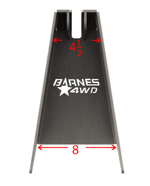 Barnes 4WD Frame shock towers are great way to get your Air shocks, Coilovers or ORI struts mounted to your frame.  These shock towers are made from ¼  steel, sure we could have made them out of 3/16  and saved some money but we did not feel that would withstand the abuse that rigs are now seeing.  These Shock towers measure 14  to the top of the frame and can easily be shortened so you can mount them at just the right height for your shock length and ride height.  Our design allows you to weld in the shock tabs for a double shear mount at you desired shock mounting width.  For any additionally needed strength you can weld our large gusset to each side of the shock tower.  Most customers find that our Bent Axle Shock Bracket is the best fit for this shock tower.  These shock towers are sold in pairs.